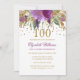 Floral Glitter Sparkling Amethyst 100th Birthday Invitation
