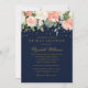 Floral Glitter Sparkling Peach Navy Bridal Shower Invitation