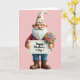 Designed with a friendly forest-dweller character at center, this card shows a round-faced figure with a big white beard, rosy nose, and bright eyes that seem to gaze forward with a gentle, caring look ❤️. A tall cone hat sits on its head, decorated with small floral shapes in soft orange and green that echo the calm color palette. The character wears a cozy red tunic with blue suspenders over blue trousers, standing in worn brown lace-up boots that add a grounded, homey feel. With arms extended as if offering a warm hug from afar, it holds a white sign in its left hand, edged with tiny flowers. The message “Happy Mother’s Day” appears centered on the sign in black flowing lettering, easy to read against the white space 🌼. In the right hand, a bouquet of small blossoms in pastel pink, yellow, and blue rests against green stems, like a sweet gift being presented with quiet affection. Soft, diffused light highlights the smooth, ceramic-like textures, and the background is a solid soft pink field behind the figure and its flowers.