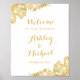 Floral Gold Lace Pattern Wedding Reception Sign Poster.