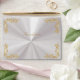 This design features a pearl white background with a floral bouquet on a white pearl background on the inside flap and a gold leaves border on the front. Personalize the return address on the back flap and the floral bouquet on inside flap can easily be replaced or removed if prefer. Designed to coordinate with the "Floral & Gold Leaves - Black & Pearl" Quinceanera Collection. To change details, click «Personalize». To move the text or change the text size, font, or color click «Click to customize further»
