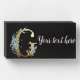 Gold monogram/initial G with watercolor flowers and leaves on black background. Customize with your own text/ family name in modern script font