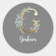Floral Gold Letter G on Gray Classic Round Sticker