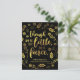Postcard featuring a quote from William Shakespeare’s A Midsummer Night’s Dream “Though she be but little, she is fierce” surrounded by flowers and leaves in faux gold foil against a black background.