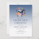 This graduation ceremony invitation featured a grad hat with a floral wreath on a blue to white ombre and customizable dark blue typography.