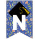Graduation congrats design featuring black and gold graduation cap on floral background.