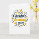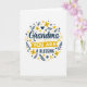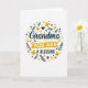 This card features the message “Grandma YOU ARE A BLESSING” centered on a bright white background, with deep navy lettering paired with golden yellow accents for a cozy, affectionate feel ❤️. “Grandma” appears at the top in flowing cursive-style lettering, while “YOU ARE A BLESSING” sits beneath in uppercase, simple letterforms that feel steady and sincere. The words “YOU ARE” are placed inside a golden yellow banner that cuts across the middle, making that part stand out at a glance. Around the text, a loose circular wreath of small flowers, curved leaves, tiny hearts, and a couple of butterflies creates the look of a gentle hug around the message 🌼. The floral shapes vary from five-petal blooms to star-like blossoms, with little dots sprinkled between them to add lightness. Navy and yellow details alternate throughout the wreath, giving a balanced, friendly rhythm without looking crowded. The butterflies angle inward toward the center, and the small hearts are tucked between leaves near the outer curve. The golden banner sits horizontally across the center, framed by navy leaves and yellow blossoms on both sides.