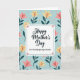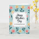 Designed with a calm botanical look, this card centers a white rectangular frame with softly rounded corners against a muted teal background. Inside the frame, “Happy Mother’s Day” appears in dark, flowing lettering near the top, with “To a Wonderful Great Grandmother” set beneath it in smaller, tidy dark text. Tiny red star-like marks sit near the inner corners of the frame, adding a gentle sparkle that feels like a quiet wink of affection ❤️. Around the frame, stylized trumpet-shaped flowers repeat in soft coral pink and pale yellow, their dark green stems and long leaves leaning toward one another like close friends. Small coral pink dots are scattered across the teal field, tying the pattern together and adding a light, friendly texture 🌼. The pastel palette and roomy white center keep the message easy to read while the surrounding florals create a tender, caring atmosphere. The flowers alternate in color across the background, with dark green leaves stretching diagonally between the blossoms.