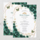 Emerald green gold and white Quinceanera celebration program. Slim double sided order of events card. Features, script font, gold butterflies, watercolor roses and tiara. Perfect for an elegant princess style glam celebration. Personalize with your own details. Printed Zazzle invitations or instant download digital printable template.