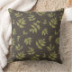 Floral Green Wisteria Leaves Tossed on Brown Throw Pillow