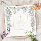 This chic baptism or christening napkin can be personalized with your special event information, featuring delicate watercolour floral greenery and an elegant gold crucifix. Designed by Thisisnotme©