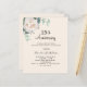 A soft beige background. Decorated with a white floral, peony flower and green watercolored eucalyptus greenery. Personalize and add your names and the details