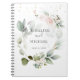Elegant Floral Greenery Wreath Notebook. This design features an illustration of pale pink roses and greenery foliage in watercolor style.