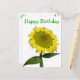 Brighten someone's birthday with sunflowers! This fun floral postcard features a bold yellow sunflower highlighted against a crisp white background with a Happy Birthday greeting printed in a fun bold green font.