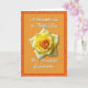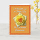 This design shows a full-bloom yellow flower at the center, its layered petals opening like a gentle embrace ❤️. A deep golden spiral sits in the middle, fading outward into a creamy pale yellow along the petal edges. The blossom rests against a warm orange background that makes the soft curves and petal texture stand out. A reddish-orange border frames the scene with repeating geometric and stylized shapes, giving it a cozy, tradition-inspired look. Above the flower, white cursive lettering arcs neatly across the top, and matching white cursive text sits below, balanced and easy to read 🌼. The bright, even lighting adds a tender glow, like a quiet moment shared between close friends. The border’s small motifs repeat evenly around all four sides in a reddish-orange tone.