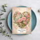 A delicate vintage-style illustration of a heart-shaped arrangement filled with soft pink roses and pastel flowers. The composition is set against a light, textured background with subtle floral patterns, creating a romantic and timeless design inspired by classic shabby chic aesthetics.