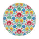 This folk art design features a brightly colored floral pattern.