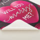 Rustic wood texture with pink and red roses and a big heart custom wedding proposal.