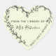 Floral heart wreath with calligraphy and modern font used in light green/yellow heart shape sticker for classroom books.