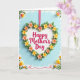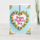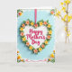 Designed with a heart-shaped floral wreath at the center, the scene shows pink and sunny yellow blossoms tucked among rich green leaves, creating a tender, close-knit frame ❤️. Inside the heart, a short message sits centered in a dark rose tone, with smooth, flowing lettering that feels like a gentle note between close friends. A magenta ribbon hangs from the top, holding the floral heart as if it were carefully presented to someone special. The artwork has a subtle layered look, like carefully cut paper shapes stacked to give soft depth and shadow. Behind it all, the background fades from bright white near the middle into a pale, cloudlike blue toward the edges, keeping the focus on the warm flowers 🌼. In the corners, extra blossoms in bright yellow and warm orange-red add a quiet sense of celebration, like a shared moment in spring. Along the bottom edge, a thin scarlet thread forms a loose loop, curving lightly across the white space.