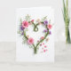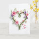 The front design shows a heart shape formed from intertwined green stems on a bright white background, with flowers tucked into the curves like two friends leaning close in a quiet moment ❤️. Large daisy-like blooms in rich pink, soft blush, and gentle lavender spread across the heart, each with layered petals and small golden centers that draw your eye. Smaller buds and curling tendrils reach outward from the greenery, adding a sense of growing affection through the arrangement. The lighting stays soft and even, making the stems look fresh and the petals look velvety without harsh shadows. Any text would sit neatly above the heart in a light gray or muted pink, with a smaller line placed below in the same tone to keep the focus on the florals. The open white space around the design gives the heart room to stand out, like a quiet pause that lets the closeness in the image feel more intimate 🌼. In the bottom right corner, a few rosy petals are scattered lightly across the white surface.