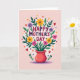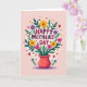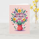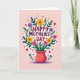 Designed with a lush bouquet rising from a sturdy crimson ceramic pot, this illustration feels like a friendly hug between flowers and message. Stylized blooms in sunny yellow, soft purple, and bright pink fan upward with deep green leaves, leaning toward each other as if sharing a quiet, affectionate moment ❤️. A celebratory phrase sits nestled among the stems in thick, hand-lettered text, colored in maroon and fuchsia so it stands out without overpowering the petals. The background is a warm blush tone that keeps everything gentle and inviting. Small hearts in red, orange, dark purple, and blue float around the arrangement like little notes passed between close friends 🌼. Scattered starburst shapes add a light sparkle near the outer edges, guiding your eye back toward the center. Subtle texture in the color fills gives the pot and petals a softly brushed look. The pot is rounded and glossy-looking, with the tallest flowers reaching near the top edge while tiny hearts and starbursts dot the surrounding space.