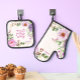 Floral Hebrew Shabbat Oven Mitt + Pot Holder Set