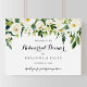 This floral horizontal rehearsal dinner welcome sign is perfect for a rustic wedding rehearsal. The design features elegant watercolor white peonies with green foliage.