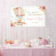 Personalize this whimsical floral hot air balloon cute animals welcome backdrop banner with your details easily and quickly, simply press the customize it button to further re-arrange and format the style and placement of the text. Perfect for baby shower, twins baby shower, birthday party, new baby, baptism, christening and more occasions! Matching items available in store! (c) The Happy Cat Studio