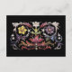 Editable vintage gothic floral art from an antique illuminated manuscript, colorful flowers and scrolling leaves on a black background with medieval blackletter fonts.