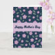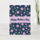 This greeting card features a calm, celebratory look with natural florals and refined lettering. A glowing horizontal band of soft lavender runs through the center, carrying a loving message in dark lettering that feels like a gentle whisper ❤️. Above and below that band, a deep indigo background is filled with repeating five-petaled blossoms in orchid and lilac tones, suggesting the kind of closeness you’d share while walking side by side in a garden. Each flower has a small white center with a touch of golden yellow, like a tiny spark of affection. Muted sage-green leaves weave between the blooms, spaced in a relaxed rhythm that feels friendly and welcoming 🌼. A faint shadow sits beneath each flower and leaf, giving them a layered, cut-paper look with soft depth. The indigo areas also carry a light speckled texture in pale blue and white, like scattered dew or distant starlight behind the floral pattern.