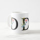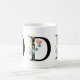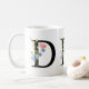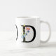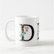 A personalized coffee mug with the letter "D" monogram, featuring decorative watercolor floral and foliage illustrations. Easily customize it with your name or create a unique gift for your loved ones.