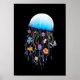 Original digital painting, beautiful teal and white jellyfish with floral garden tentacles. Soft colorful flowers and leaves flowing in the water under the jellyfish. Something whimsical to decorate your world.