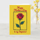Designed with a striking single rose at the center, this graphic-style card uses deep red petals with gentle shading to suggest a soft, velvety texture and a tender, affectionate mood ❤️. Dark outlines trace the flower, its green leaves, and the straight stem, giving the image a strong, defined look. The rose sits inside an uneven black square frame that feels casually drawn, like a quick sketch made for someone special. Behind everything is a solid, bright yellow background that adds warmth and energy, like a sunny day shared together 🌼. A line of flowing red lettering is placed above the framed rose, and a second matching line sits below it, balancing the layout. The red text echoes the flower’s color so your eye moves from the top words down to the bloom and then to the bottom line. The contrast between the yellow field, red rose, and black frame makes the design easy to notice at a glance. The final detail is the slightly wobbly black square border surrounding the rose against the yellow backdrop.