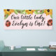 Decorate your ladybug theme birthday party with this adorable ladybug party banner! Featuring a pink background with yellow flowers and lots of ladybugs!