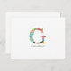 Floral Letter Monogram Initial - G - Flat Card