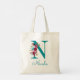 Floral Letter N Script Monogram Teal Pink Tote Bag