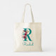 Floral Letter R Script Monogram Teal Pink Tote Bag