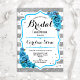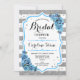 Floral Light Blue Silver Stripes Bridal Shower Invitation