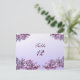 Lovely lilacs are the theme of this elegant wedding table number card. The front has a border of pink and mauve lilac sprays on a gradient pale purple background. The back has one simple spray of blossoms on the same exquisite pale background. All text can be customized for your special occasion.