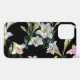 Royal lilies adorn a seamless pattern, displayed against a black background. This artistic representation is brought to life in watercolor painting.