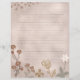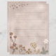 Floral lined journal sheet, junkjournal paper, scrapbook paper in muted earth colors, vintage colors, is a beautiful letter paper with painted wild flowers.