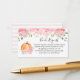 Sweet girl's pumpkin themed baby shower book request insert featuring an orange pumpkin and lovely pink floral arrangement and some foliage.