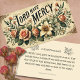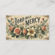 Featuring a beautiful vintage floral roses image with the words "LORD HAVE MERCY". in a vintage calligraphy style. On the back is the prayer, ""O Merciful Lord, grant us the grace to trust in Your infinite mercy. In times of trial and sorrow, may we find refuge in Your loving heart. Have mercy on us, guide our steps, and keep us close to You always. Amen."