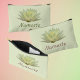 A beautiful pastel yellow and green lotus waterlily adorns this photographic Zen floral cosmeticsor accessorypouch. The text on each side may be personalized with a Name or your own text. This is original botanical flower photography by JLW_Photography.