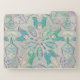 Floral Mandal Pattern File Folders. Complementary mandalas in shades of green, gold and black with bits of purple, pink, white and blue.