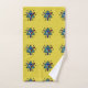 This professional-grade design features a vibrant blue and red floral mandala motif set against a bright yellow background. The seamless pattern creates a balanced and artistic look, ideal for modern home decor.