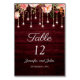 Floral Maroon Wooden Rustic Wedding Table Number