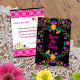 Floral Save the Date card in colorful Mexican Fiesta style and decorated both sides with folk art flowers and papel picado. The wording on the front simply reads "Save the Date" in bright pink on a black background. On the back, the template is set up ready for you to add your special date, your name, the occasion and custom text. The design can be customized to suit any occasion and is perfect to coordinate with our Quinceanera collection. Please browse our store for matching address labels, envelopes etc.
