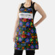Fun apron featuring a Mexican pattern of colorful flowers, birds and ornaments set against a black background and two lines of custom text. Add a person's name, your Abuela's name, restaurant name, cafe or shop name or delete the text and rectangle and just use the pattern. Perfect for budding chefs, birthday parties, special events and fiestas, caterers, host/hostess gifts or anyone who loves Mexican cuisine.